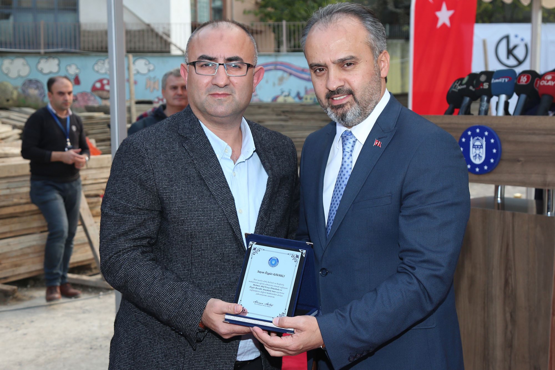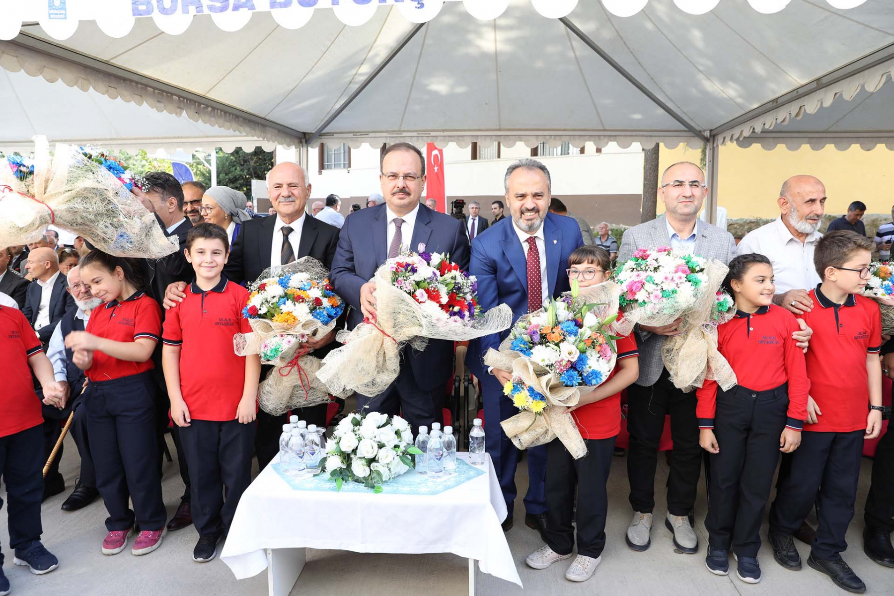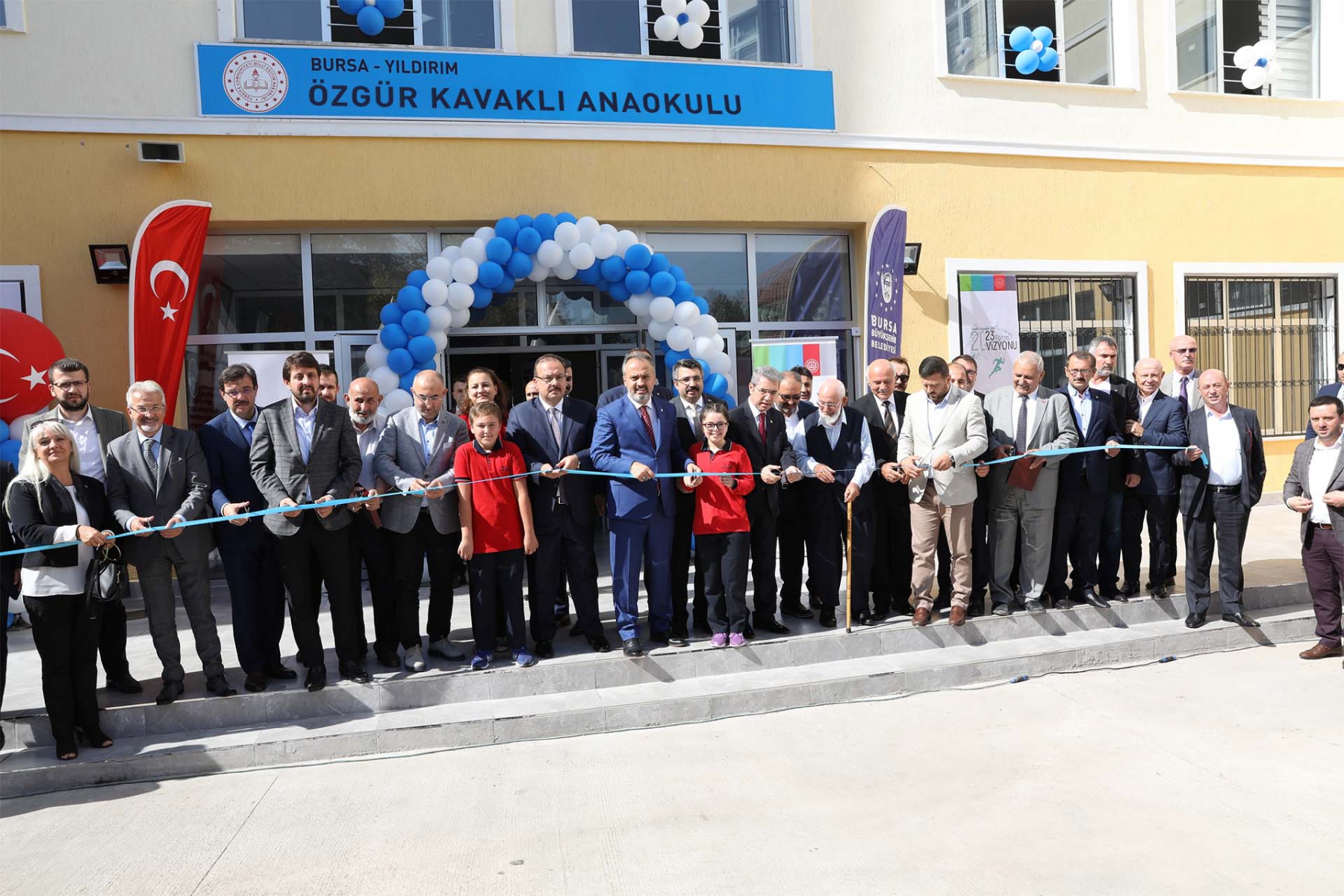 Bursa Büyükşehir Belediye Başkanımız Alinur AKTAŞ, Yıldırım Belediye Başkanımız İsmail Hakkı Edebali, Gürsu Belediye Başkanımız Mustafa Işık, Kestel Belediye Başkanımız Yener Acar, İl Müftümüz İzani Turan, Yıldırım İlçe Milli Eğitim Müdürümüz Suat Topal, Yıldırım İlçe Kaymakamımız Mehmet Aydın, Ak Parti Yıldırım İlçe Başkanı Hüdayi Yazıcı, Ak Parti Yıldırım Gençlik Kolları Başkanı Adnan Kurtulus, Müsiad Bursa Şube Başkanı Mustafa Gürses, IHH Bursa Şube Başkanı Hüseyin Kaptan, Okul Müdürü İsmet Erhan Yalmancı ve Okul Aile Birliği, dostlarımız ve Bursa'lıların katılımıyla Özgür Kavaklı Anaokulu'nun temel atma ve açılış törenlerini gerçekleştirdik.